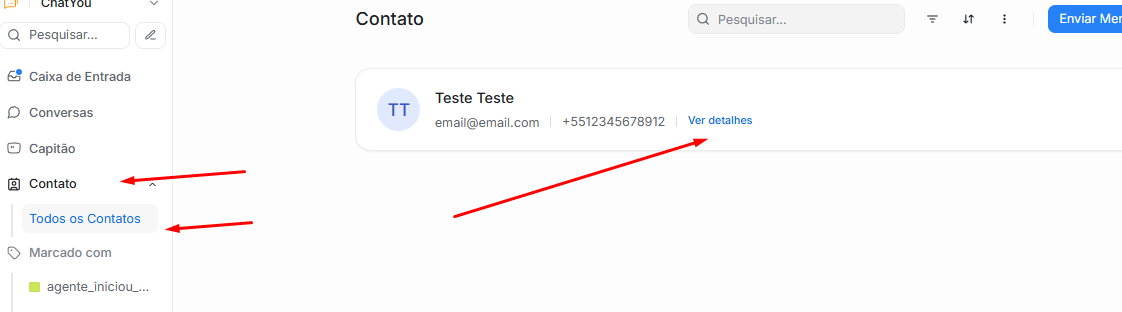 Na aba "Contato", selecione o contato desejado e depois clique em ver detalhes.